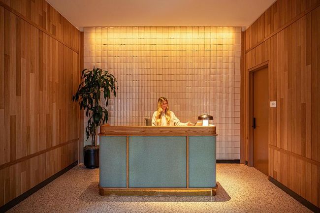 沿著 North Front Street,建築向街道敞開,形成一個自然延伸至街道的迎賓庭院,成為充滿活力的主要住宅入口。庭院綠意盎然,並擁有開闊的天空視野,為高架鐵路下方的街道能量帶來一處清新喘息之地。溫暖的綠色灰泥包覆庭院空間,使建築與植栽相互融合,營造寧靜、親密的氛圍,同時為咖啡座提供宜人的戶外場景。