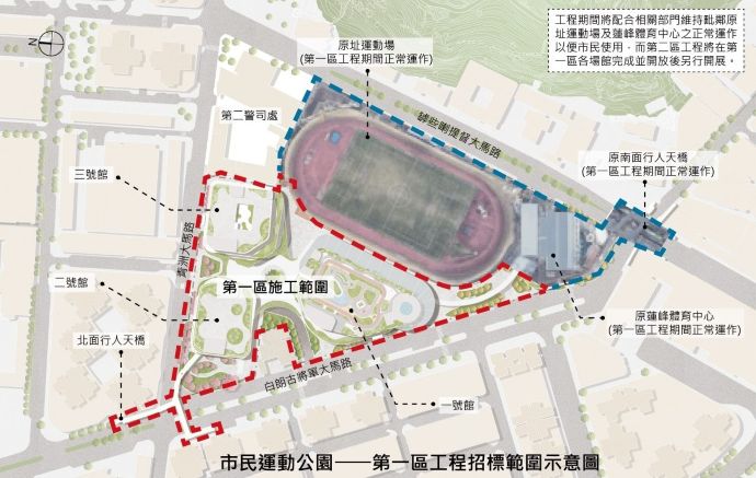 市民運動公園建造工程(第一區)招標,工程不設底價,總工期最長1,014工作天,截標日期為2025年8月13日。 (MacaoBuild | 綜合報道)