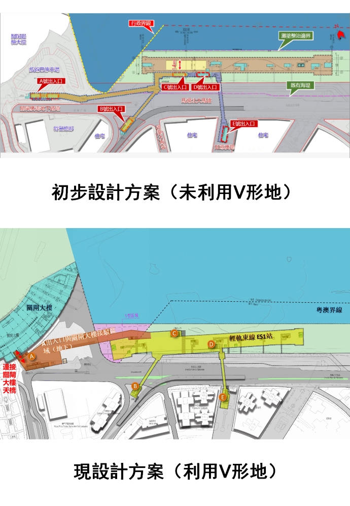 初步研究,ES1站與關閘邊檢大樓具備條件無縫連接,認為在現有邊檢大樓的出入口基礎上,再分別在一樓出境大堂及地面層入境大堂增加連接的方式具可行性。為此,將按照輕軌東線北段工程合同條款,由該承建商負責實施“V形地”範圍內的工作;至於ES1站連通關閘邊檢大樓的方案仍處於研究階段,將適時公佈。(MacaoBuild | 綜合報道)